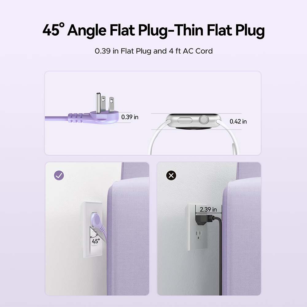✈️Portable Travel Design : Weighing only 8 ounces and measuring just 4.33 x 2.5 x 1.6 inches, this purple portable power strip is designed for business travelers. It easily fits in luggage, ensuring easy access to power and charging your devices anywhere.