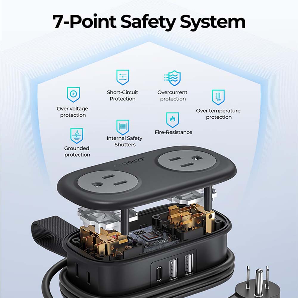 🎨7-in-1 Power Strip : Equipped with four AC outlets, two USB-A ports, and one USB-C port, this power strip can charge up to seven devices simultaneously. Whether it's a smartphone, laptop, tablet, headphones, or other electronics, it quickly identifies and provides optimal charging speeds, making it suitable for home, office, travel, and dorm rooms.