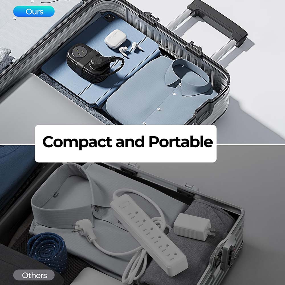 🌍Wraparound Desk Accessory : The unique wraparound power strip design effectively organizes and secures your data cables, eliminating the hassle of tangled wires. Not only does it store neatly in luggage or a backpack, it also serves as a lovely desk accessory to decorate your desk, creating a lovely workspace.